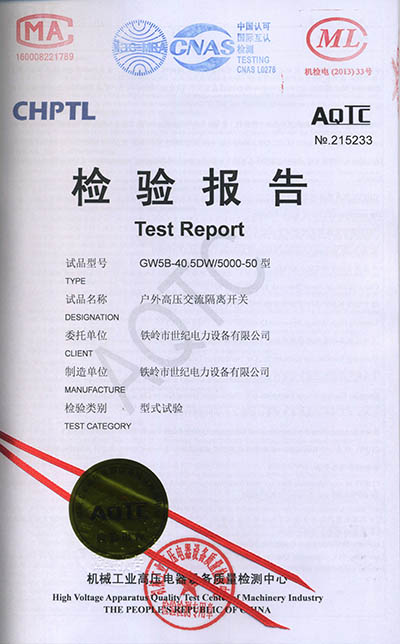 戶外高壓交流隔離開關檢驗報告