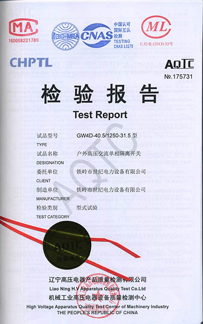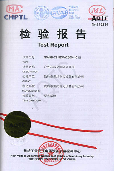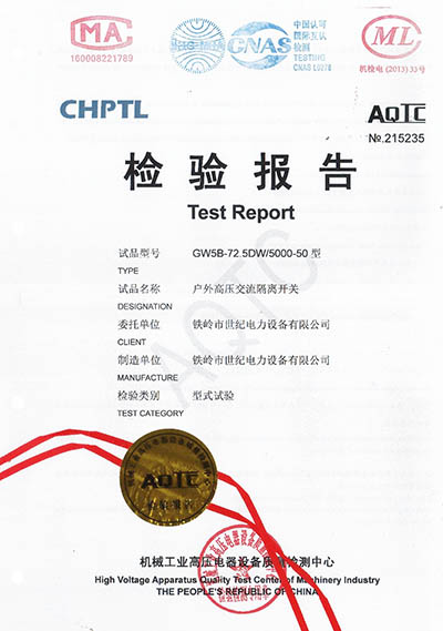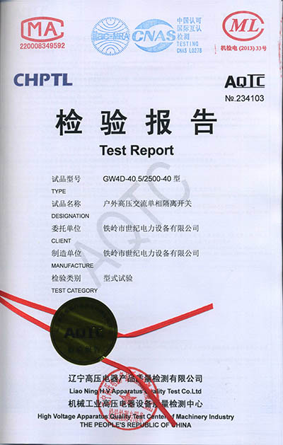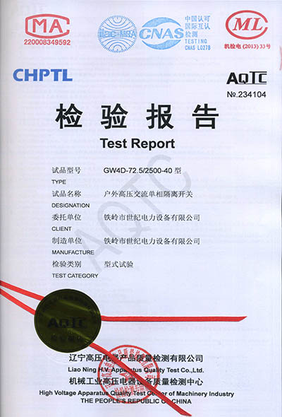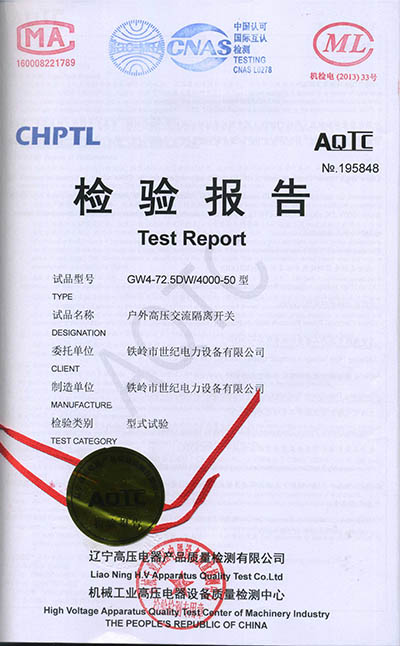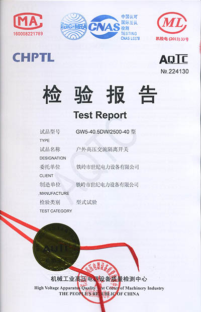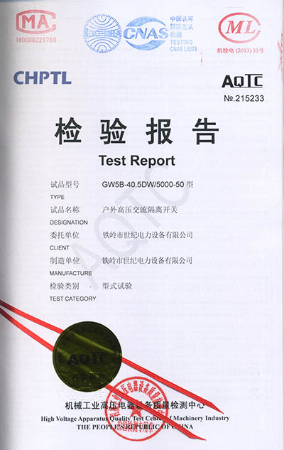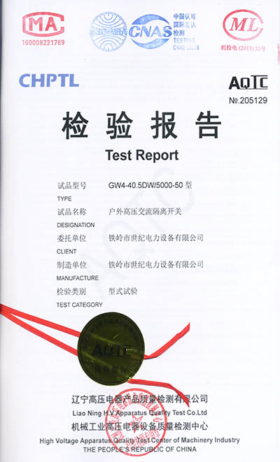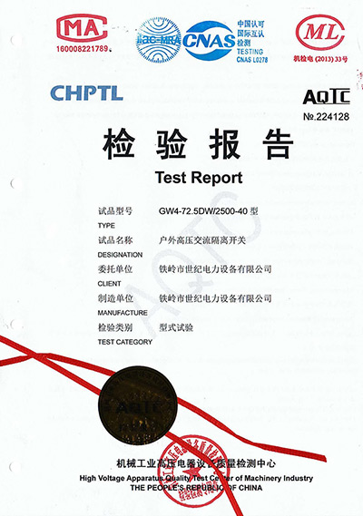 戶外高壓交流隔離開關(guān)檢驗報告