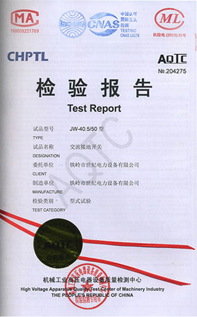 交流接地開關(guān)檢驗報告